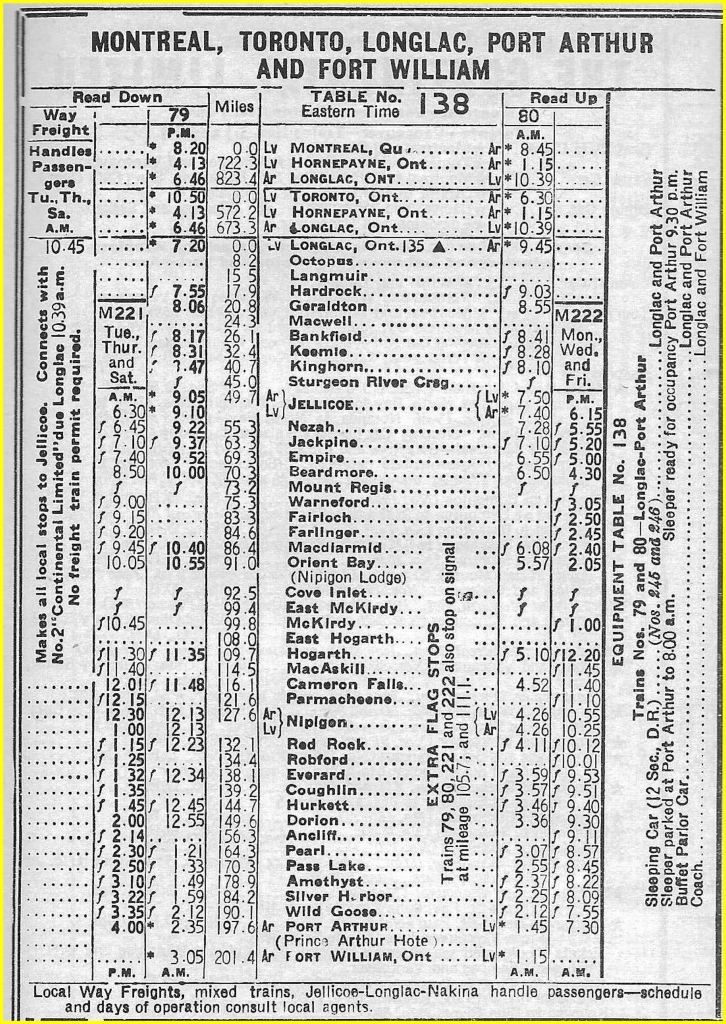 CNR timetables, courtesy of Dave Battistel.