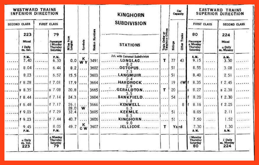 A map drawn in 1934 shows an unnamed road linking the Canadian National Railways track to properties that became the Bankfield and Tombill mines. The name “Bankfield” identified a “station”, most probably a flag stop with a section gang house, just west of the newly-minted “town” of Geraldton. Geraldton didn’t qualify as a town yet, having only a dismounted boxcar for a station together with a small cluster of buildings. In 1935, a mining report identified the unnamed road: it was the Kenwell siding road. It retains that name in local memories down to this day.