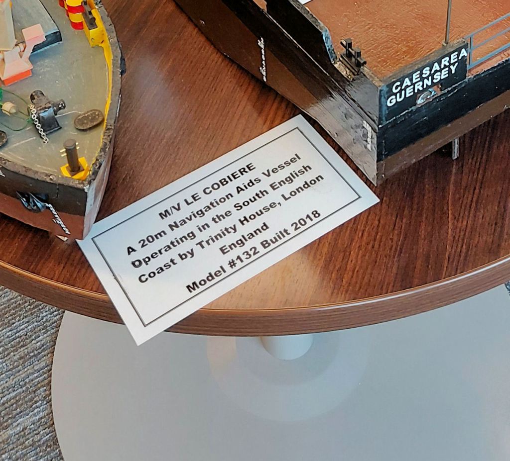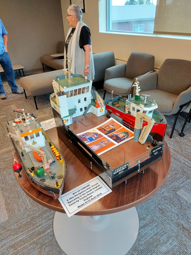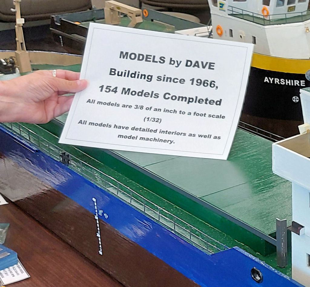 After snapping a photo, I joined the tour. Dave Benedet was still setting up his display of model ships. We peppered Dave with questions until newcomers demanded his attention. Dave makes scale models of boats and ships out of balsa wood and bits of plastic. Every 3/8 inch equates to 1 foot of the real thing.