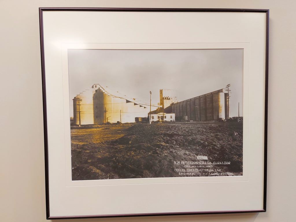 Some research has yielded the following history. Norman McLeod Paterson was born in 1883 in Manitoba and moved to Fort William in 1908. In 1912 he built his first grain elevator, Elevator “K”, followed by Elevator “0” in 1914. Elevator “0” was a unique business devoted to drying and upgrading grain. It was called a “hospital elevator”, presumably because it “cured” grain.