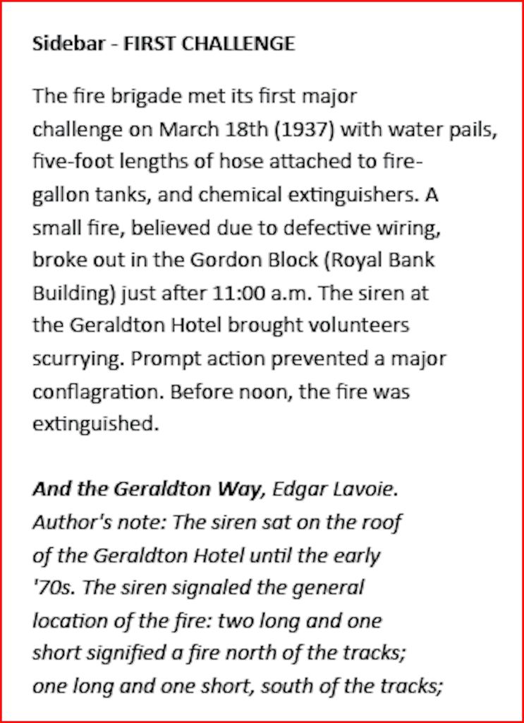 What an interesting reading of the 1st Geraldton Fire Department ! ! It was real hard going in those days !