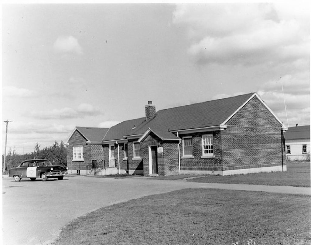 In the fall of 1938, the Ontario Provincial Police constructed this brick building on Main Street for its Geraldton detachment and jail. The vintage car suggests a date in the mid to late 1950’s.