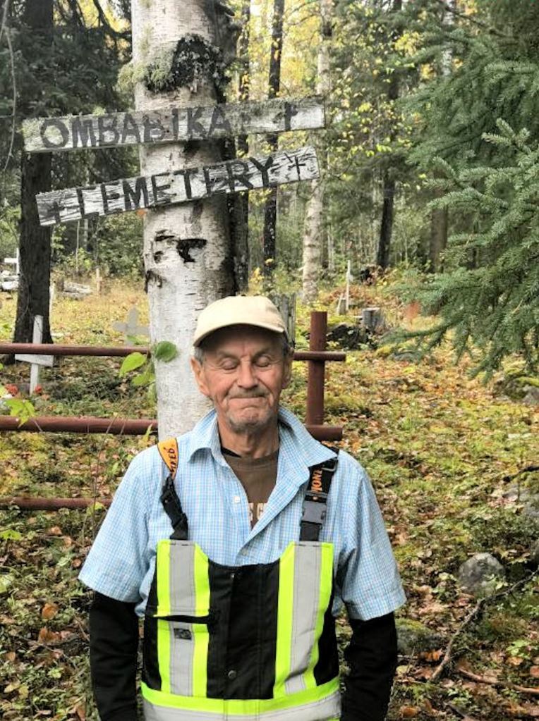 The Ombabika Cemetery is located about 2 kms west of the abandoned village of Auden near the CNR tracks. It was once a Roman Catholic mission there and has been long abandoned. There is one stone marker (1978), several wooden crosses with names painted and 40 plus wooden crosses without names. Someone has made an attempt to upkeep markers with paint, but mother nature has taken her toll.