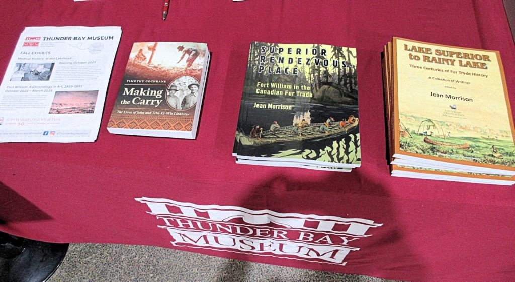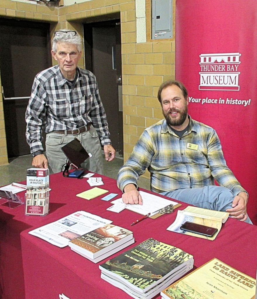 Michael De Jong, the curator, often attends public events. Here he poses with a fellow historian (left), John Lavoie (yes, he’s a relative), who runs the museum in Manitouwadge.
