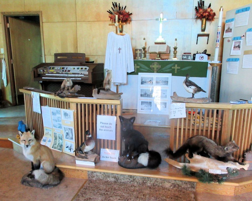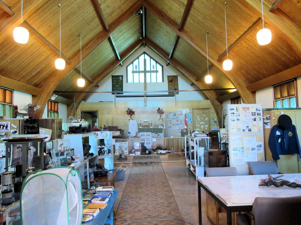 After a busy tourist season, the museum is closed except by appointment. One may be forgiven if, upon walking through the door, one has the feeling that one is in a church. That’s because the museum is a church, a deconsecrated church that used to be the Anglican Church of the Holy Spirit. Besides, the cross over the door and the steeple on the roof are other give-aways.