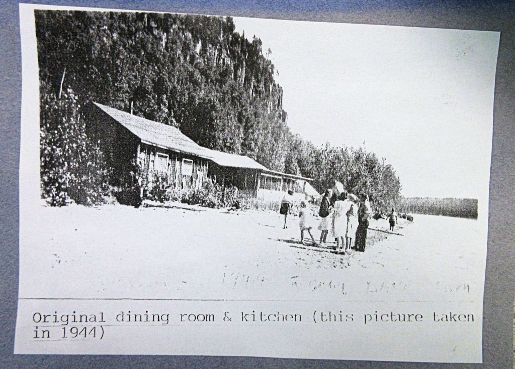 “. . . Clapboard cabins were furnished with double bunk beds. No electricity. Plumbing was an outhouse and wash water was the lake. Each cabin had its own name. The dining room had long rows of communal tables and benches. Meals were good but plain ̶ usually hot oatmeal, peanut butter for breakfast. No snacks between meals . . . Tuck Shop was a popular daily opportunity to buy sweets with your own money.”