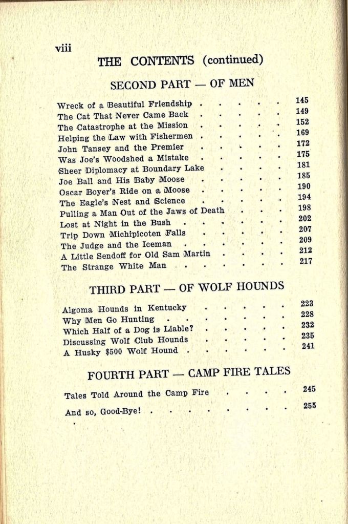 One of the dedications is to the “Algoma wolf”. Without getting into technicalities, consider the gray wolf (also spelled Gray Wolf), Canis lupus, as the species that makes its home in Canada. Related to Canis lupus is the Eastern wolf (Canis lycaon), aka the Algonquin wolf, and sometime aka the Algoma wolf. As far as I can tell, the Algoma wolf in this book refers to both the gray wolf and the Algonquin wolf, and it may take a biologist to know the difference. Only in 1963 was the Eastern wolf (Canis lycaon) identified as a separate species. There are something like 60,000 gray wolves in Canada, and only a few hundred Eastern wolves, centred in Algonquin Provincial Park. Curran was a promoter for the Algoma District, and may have been simply promoting his home territory.