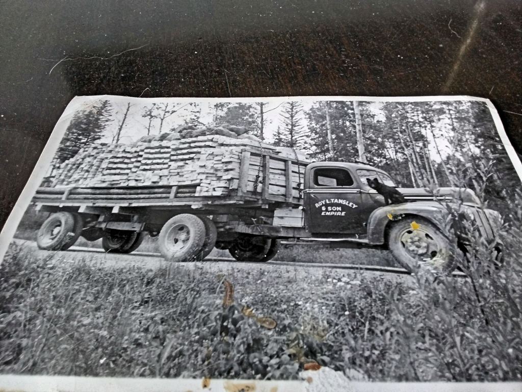 This info is reproduced from a Facebook page, people from Beardmore Ont. Info supplied by Susan Lind nee Sinclair. The truck appears to be transporting raw lumber. Roy Tansley was a major Beardmore logging contractor, and “Empire” is the alternate name for the rural community of Tansleyville, now part of Beardmore. No modern map recognizes Tansleyville, but the World Wide Web still does!