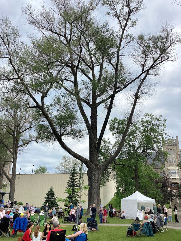 One source states the park was established in 1881 and “formally opened” in 1906. Well, 2024 take away 150 equals 1874, but who’s counting? Not on a beautiful day such as today. And not today’s organizer of the celebration, who was likely in the crowd squeezed into the bandshell. I didn’t spot him  ̶  just as well.