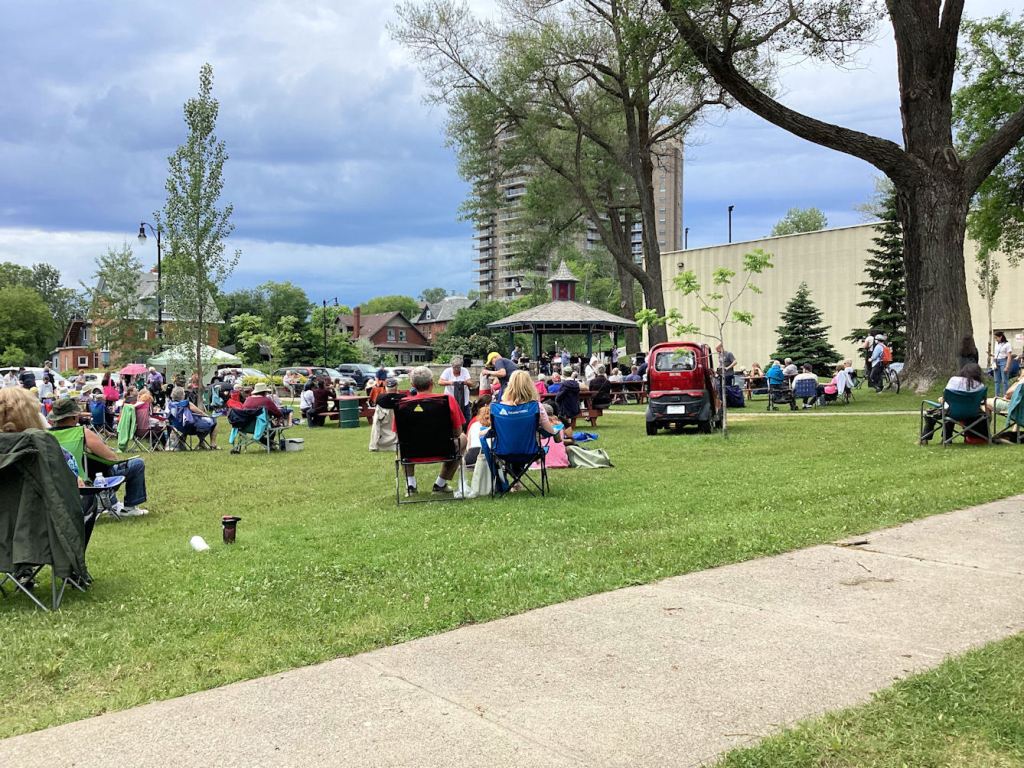 The pavilion or bandstand was built in 2018 with money raised in part, by the Coalition to replace the deteriorating Rotary Bandshell (1984-2011) so that we can ensure the tradition of weekly public concerts in the park continues. With the Musicians Trust Local 591 and The City of Thunder Bay, we offer a free Monday evening concert every summer—we start July 8 and run for 8 weeks till Aug 26.
