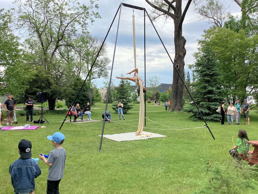 One performer from Women In Silk executed acrobatic moves on silken ropes. Even kids watched the act.